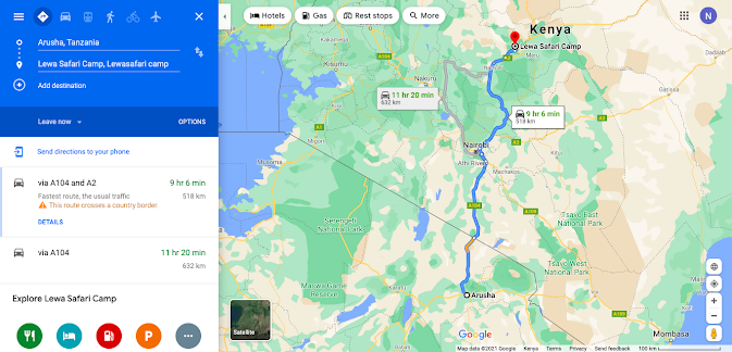 According to google maps, it’s around 518km (give or take) from point A to B and should take around 11 hours. Top tip for travel in Africa NEVER believe google’s estimated time!