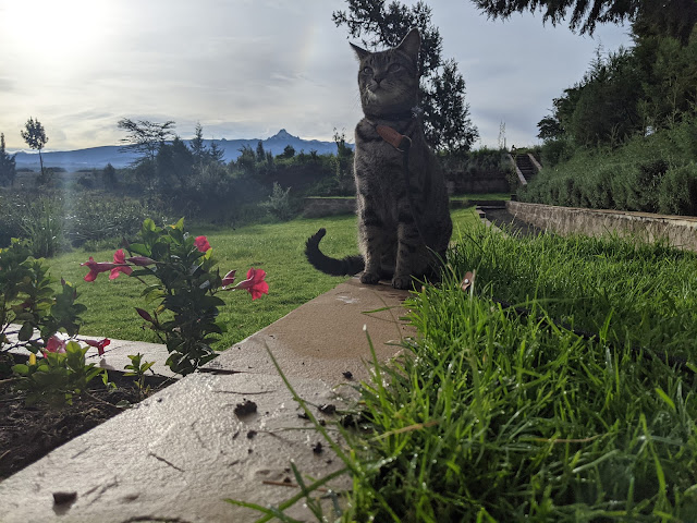 Today we are off to a good start, every pet has had breakfast and done their morning ablutions, humans are not so lucky as we have no food with us so we will get something in Nyanuki. Our packing seems to have got significantly worse, I now have the cat on my lap and the dogs somehow have even less room in the back so everyone’s a loser! But hey only 3 hours of driving today!